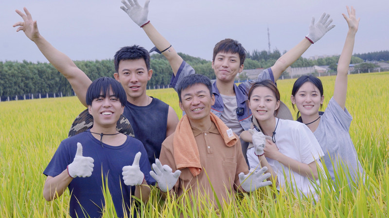 王宝强及青年演员合影近日,正值一年一度的农民丰收节,新华每日电讯官方账号发布一则视频。视频中担任丰收节主题乡村生活家发起人的王宝强,带领一众青年演员张祎曈、韩储鸽、李若天、杨天琪、胡浩帆下地劳作,分享种地经验。后又来到稻田,熟练地割起稻谷,并表示“从小干农活长大,咱可是地地道道的农民。”娴熟的动作,看得出对这片土壤有着天然亲近感。