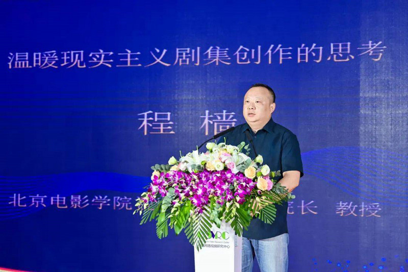 北京电影学院视听传媒学院院长程樯以《温暖现实主义剧集创作的思考》为主题,分享了近五年出现的一批精品力作,这些作品以一种集体自觉为温暖现实主义剧集的兴起夯实了文本基础、标记了故事注释、树立了典型标杆。程樯教授进一步从温暖现实主义的逻辑起点、文本框架与视听呈现,三个层面展开交流探讨。并强调如何正确把握创作方向,清醒地认识文艺与生活、与社会、与国家的深刻关系,尤其是与反映人民美好生活、塑造丰富精神世界之间的深刻关系,是摆在广大文艺工作者面前不容回避的重大时代性命题。